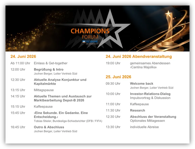 Deine Expertise, der Austausch mit Beratern anderer Genossenschaftsbanken, neue Impulse und Ideen - dafür steht das DZ BANK ChampionsForum.